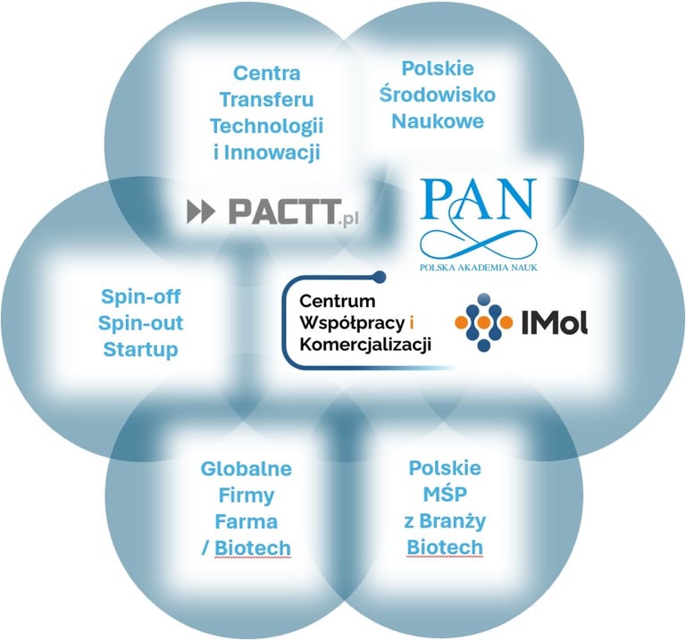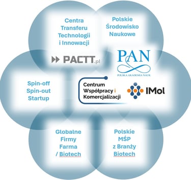 Naszym celem jest rozwój i realizacja strategii przedsiębiorczości IMol, opartej głównie na tworzeniu spółek typu spin-off powstających przy Instytucie oraz zapewnieniu im dalszej inkubacji i akceleracji. Jednocześnie wspieramy przedsięwzięcia startupowe w ekosystemie biomedycznym i biotechnologicznym, zwiększając ich szanse na sukces rynkowy.